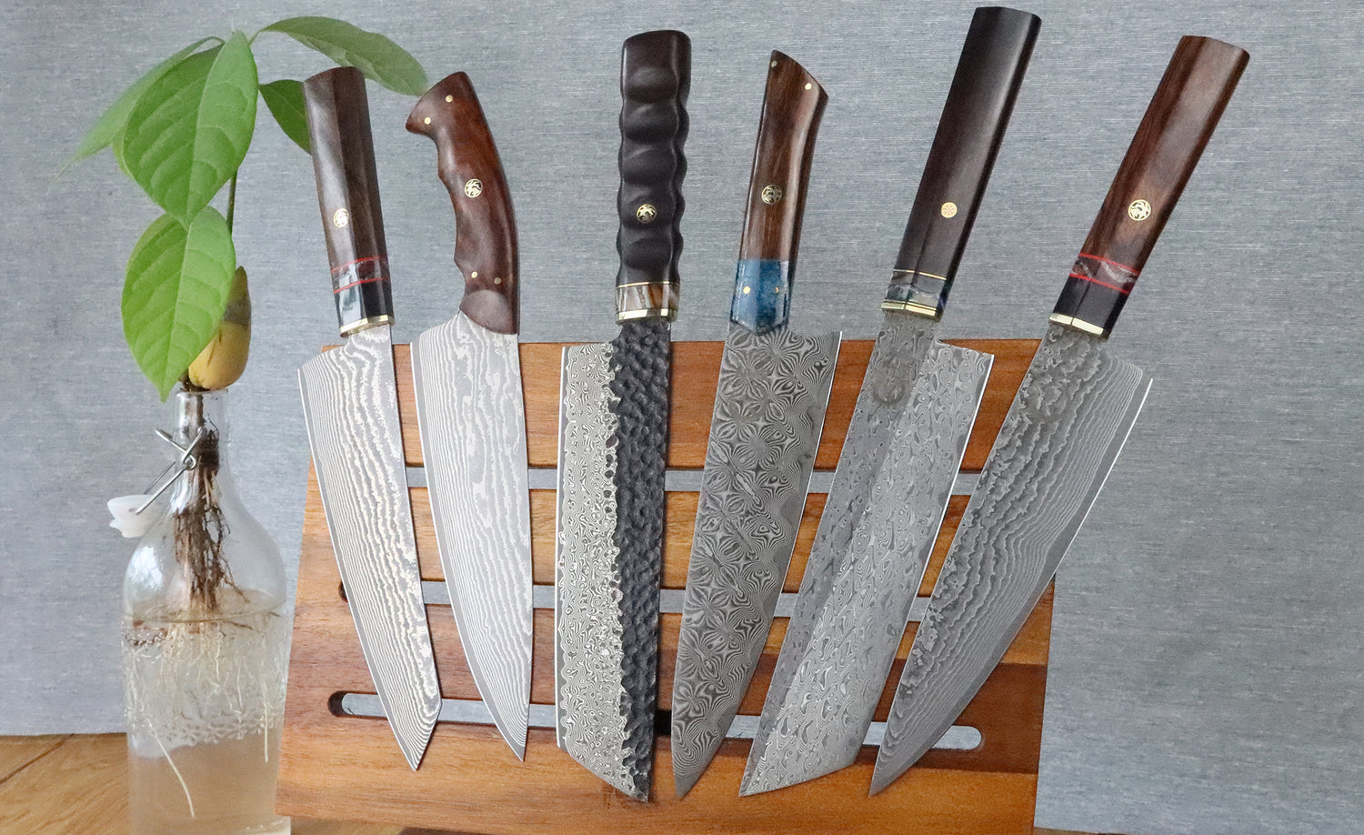 Unsere Messer bestehen aus bis zu über 100 Lagen Damaststahl. Durch mehrfaches falten des Stahls reichen unsere Messer in die Kategorie der Premiummesser!